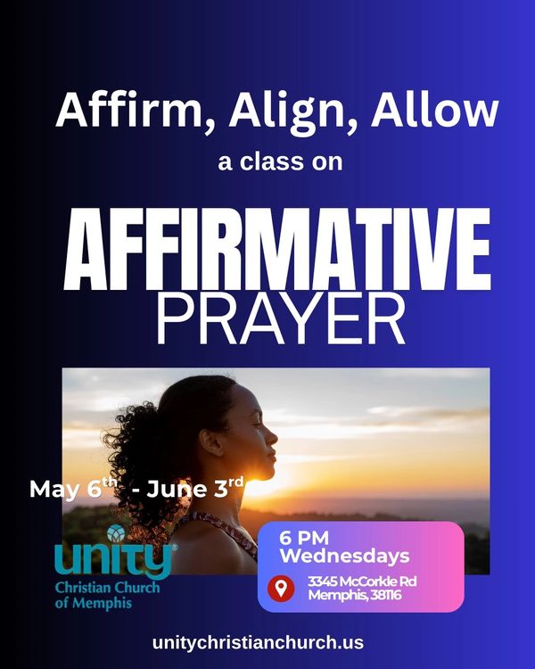 In this transformative 5-week class, you’ll explore the practice of Affirmative Prayer as taught in Unity and New Thought traditions. Through guided practice, reflection, and spiritual insight, you’ll learn how to consciously align your thoughts, words, and beliefs with the Divine Presence within.